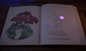 Beacon Pines - это мрачноватое, но при этом милое приключение, действие которого разворачивается внутри таинственной книги. Игрок одновременно выступает и читателем этой истории, и её главным героем - мальчиком по имени Лука.